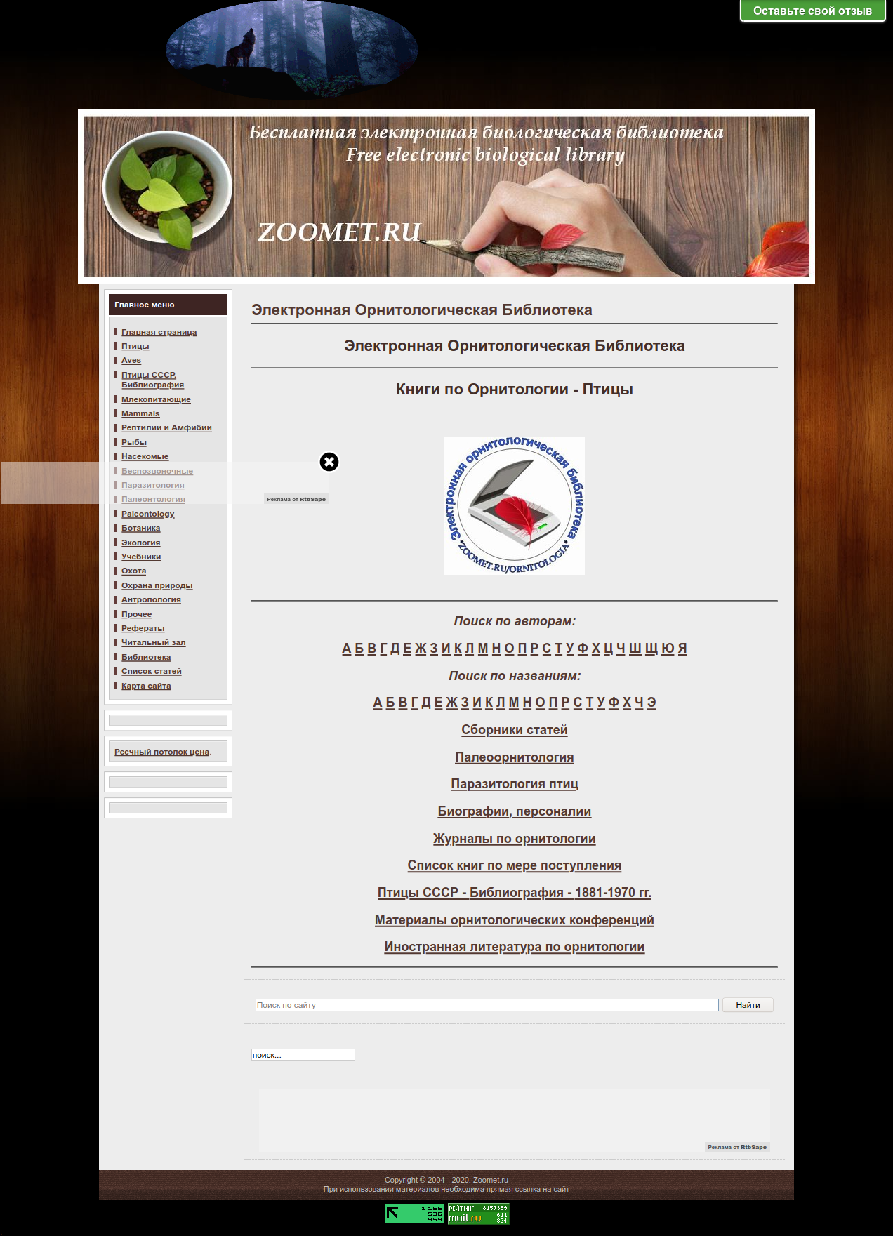 Recently, I discovered an interesting and useful resource: electronic biological library zoomet.ru. Here is what its creator Sergei Gorchakov writes about it: